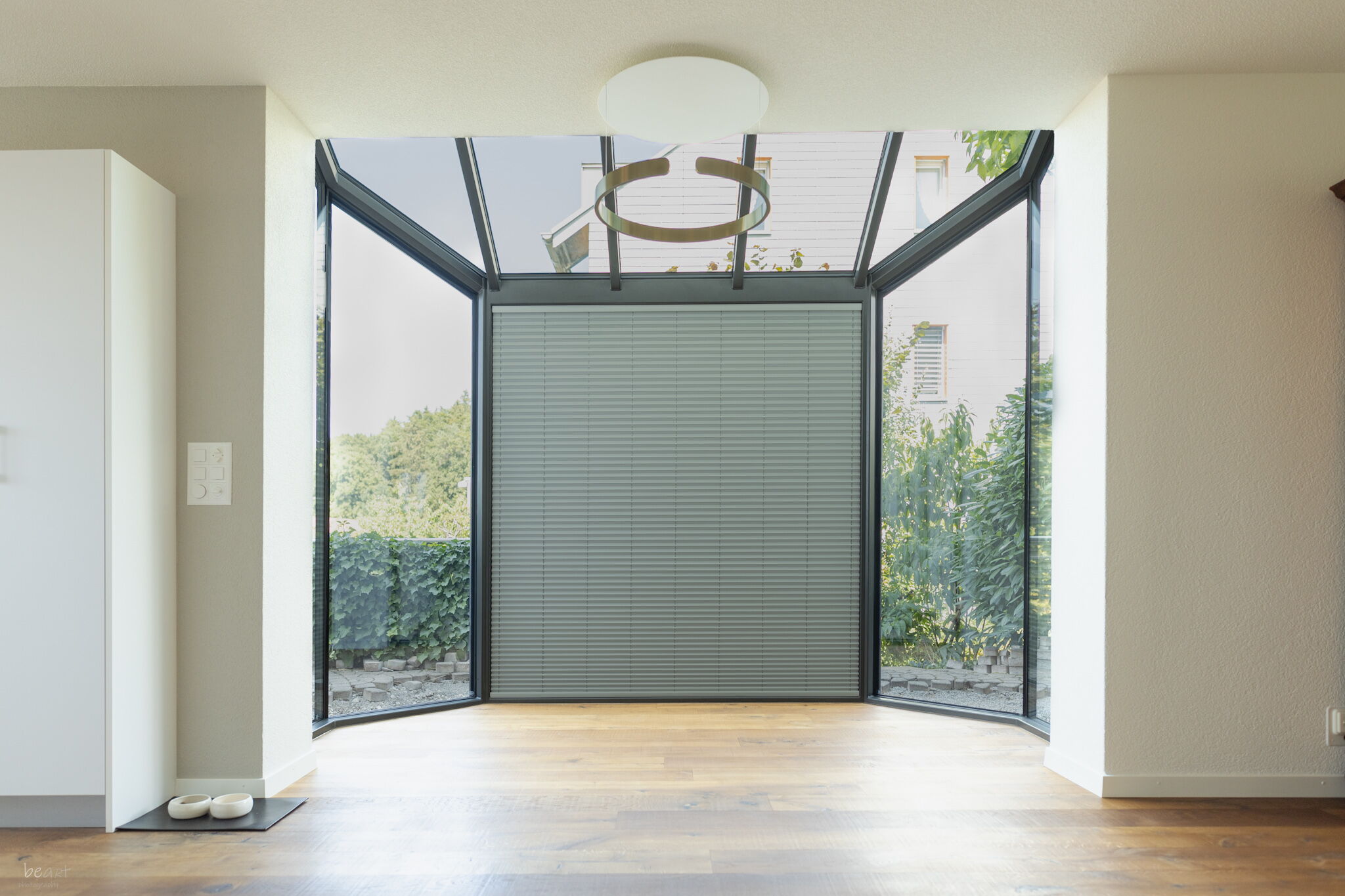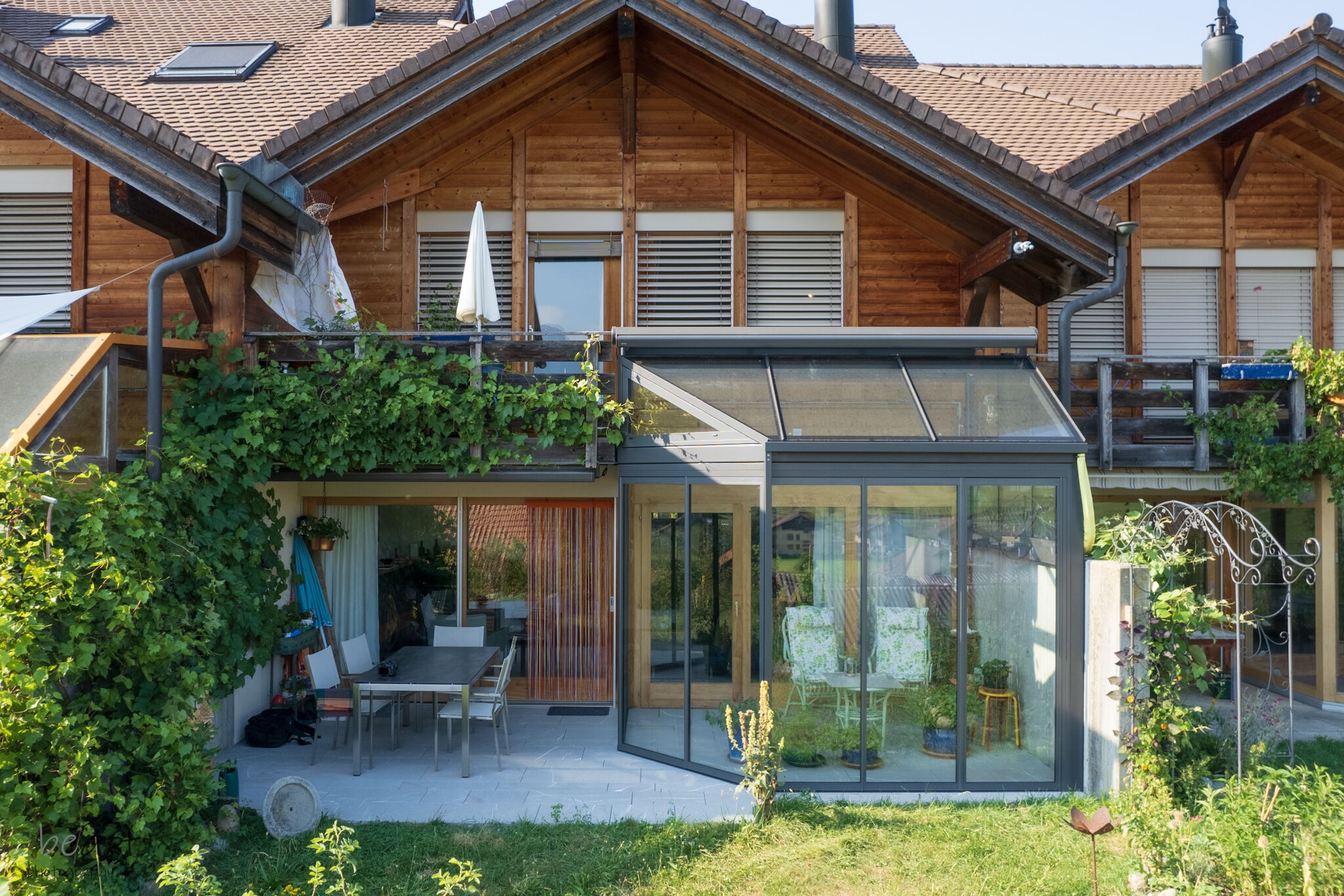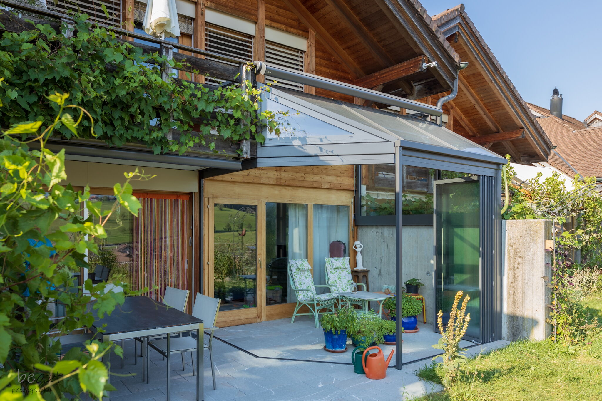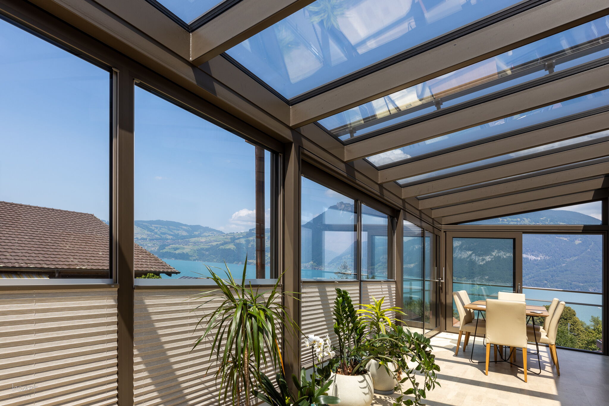 • Eingesetzt werden Dachbeschattungen und Vertikalbeschattungen der Schweizer Marke Stobag