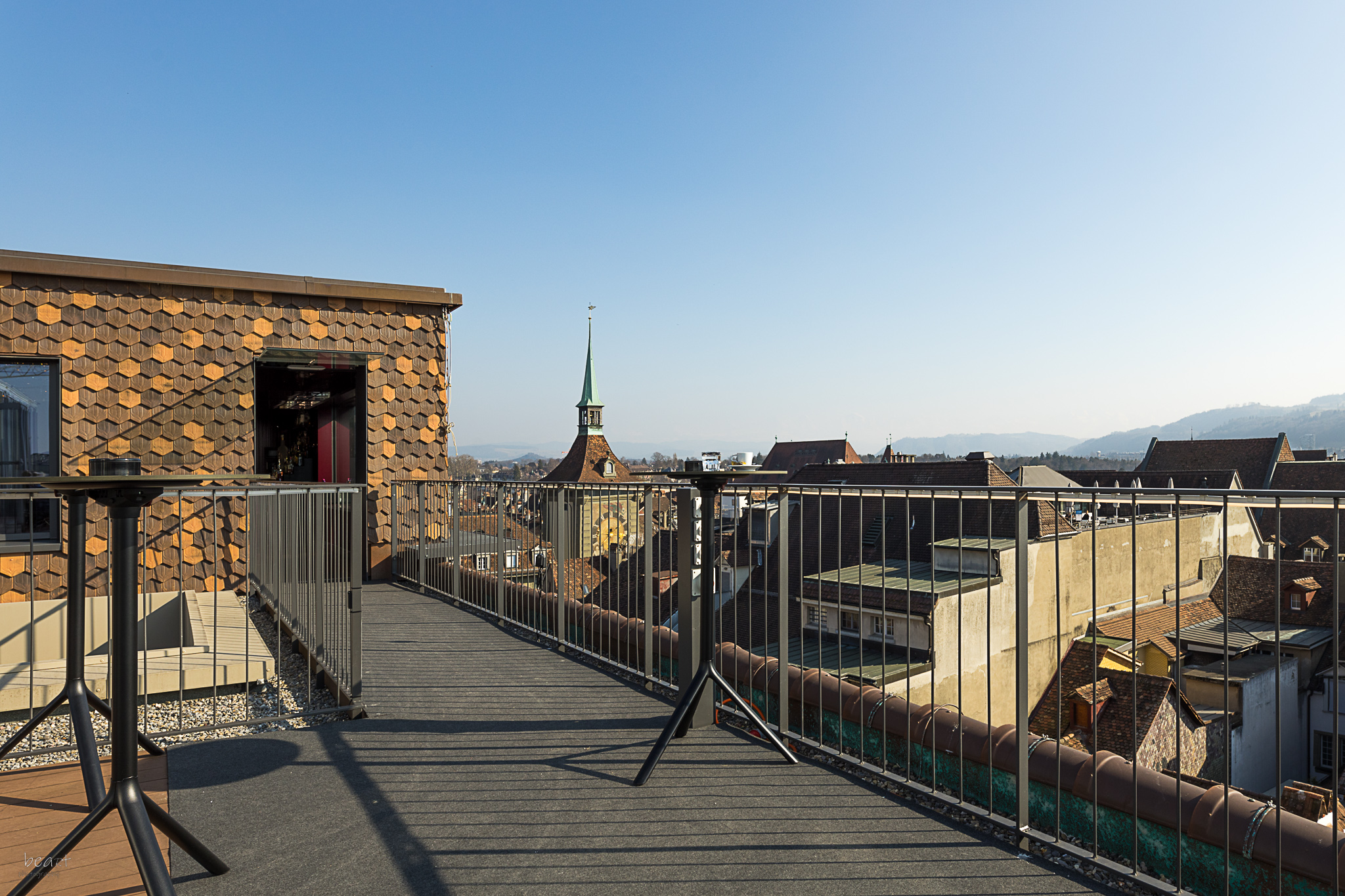 Geschlossene Geländer: Geschlossene oder halbtransparente Geländer bieten zusätzlich Diskretion und Sichtschutz. Dank unseren Möglichkeiten in der Blechverarbeitung stehen Ihnen viele Gestaltungsmöglichen offen.