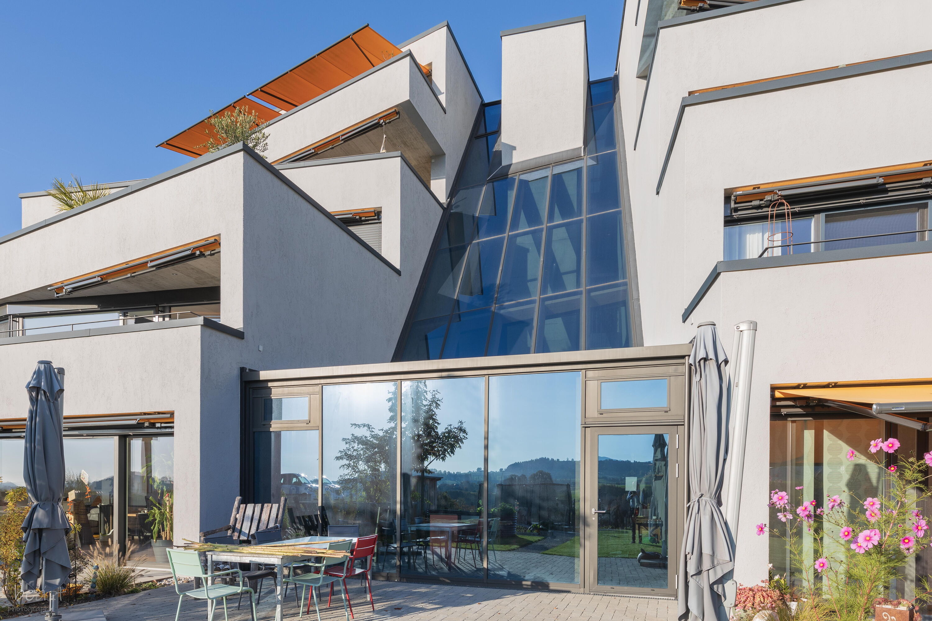 Pfosten-Riegelsystem als Eigenentwicklung, mit erhöhten ästhetischen Anforderungen.
