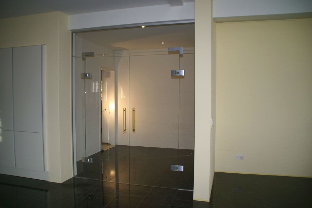 - Glastüren mit Pendeltürbändern DORMA TENSOR